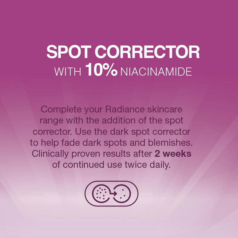 The Radiance™ Spot Corrector is clinically proven to fade dark spots and blemishes in just 2 weeks with twice daily use. Dermatologically tested and suitable for all skin types| it offers effective anti-blemish treatments tailored for diverse ethnicities| making it safe for sensitive skin.